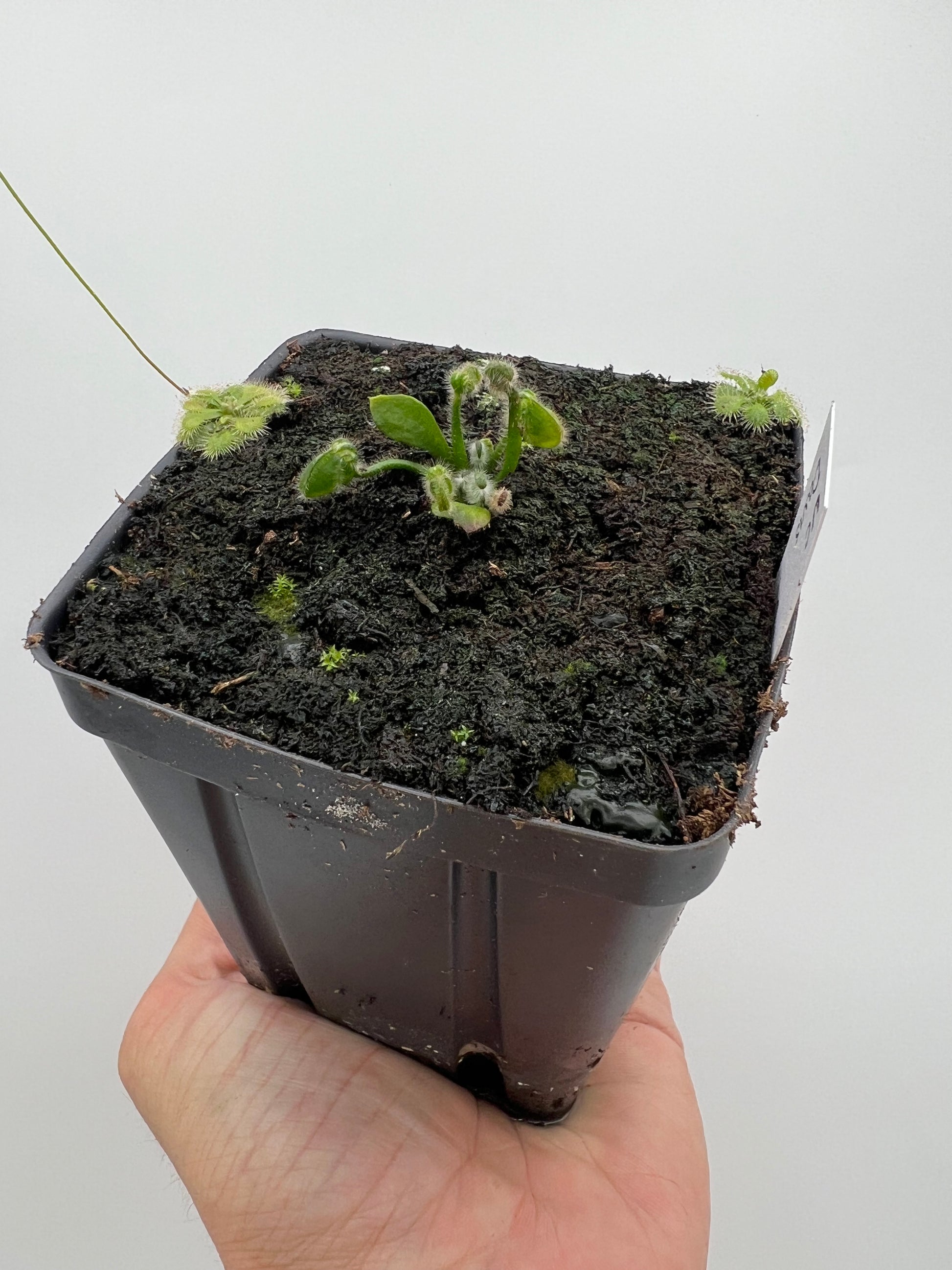 This small clone of Cephalotus follicularis “UC Davis” was propagated from our own mother plants. The plant shown is the plant you will receive. This plant is fully rooted and actively growing.
