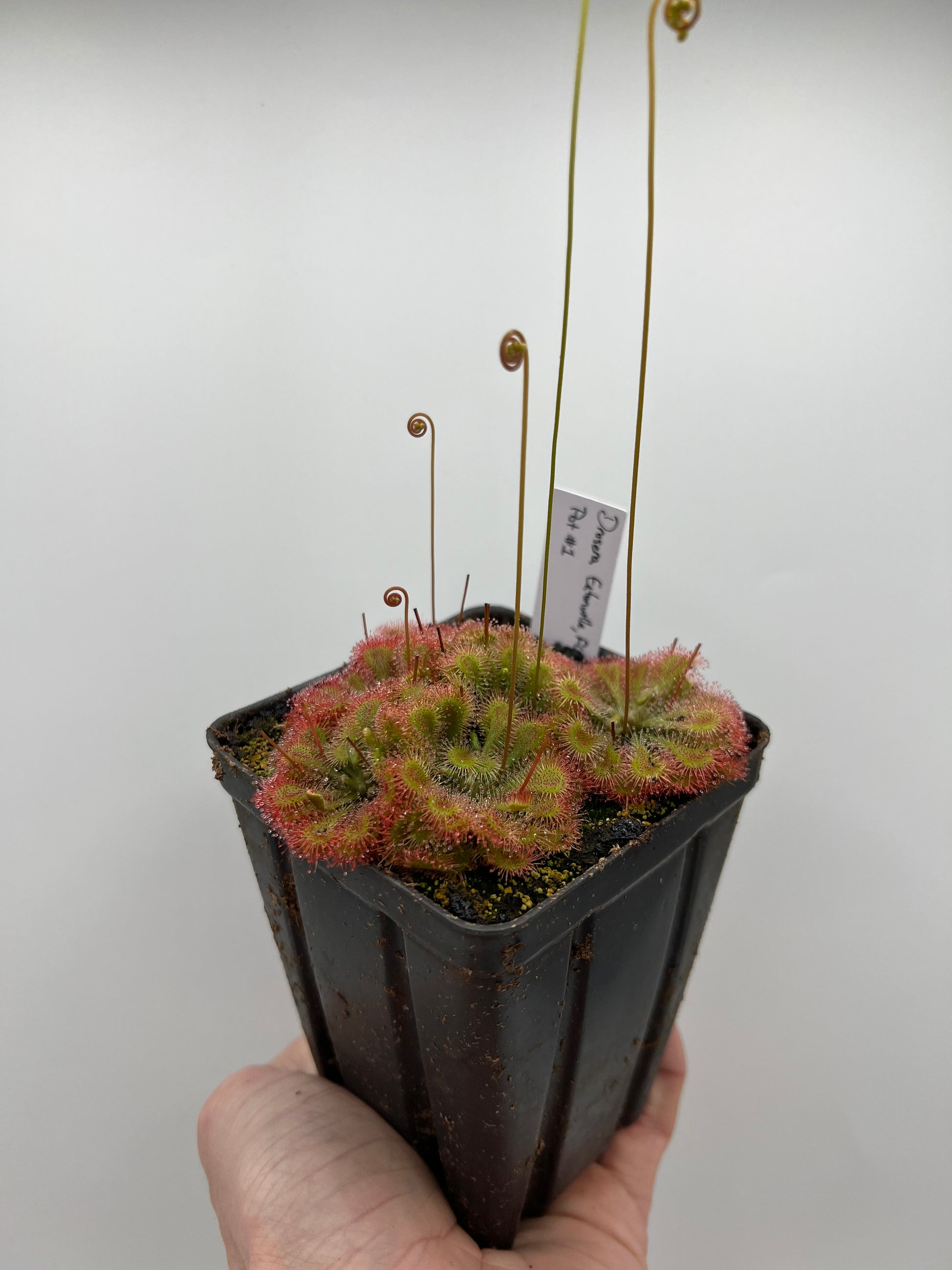 Our Drosera “Eatonville, FL” is likely a natural hybrid which is why we just call it “Eatonville, FL”. These plants are grown from our own horticulturally produced seed using our own plants within our collection to keep the genetics of this plant true. This plant was originally a rescue many years ago from a construction site where a gas station now sits, as we’ve been told. Originally gifted to us many years ago by another grower from the area. It grows year round for us and doesn’t seem to have a dormancy requirement. This one has proven to be a prolific grower and an excellent collection addition.
