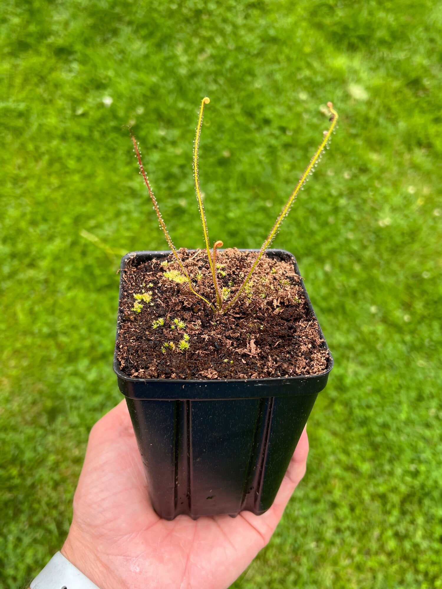 These Drosera filiformis var. floridiana were grown from our own horticulturally produced seed. These plants are currently growing in a 3.5” square pots for size reference.