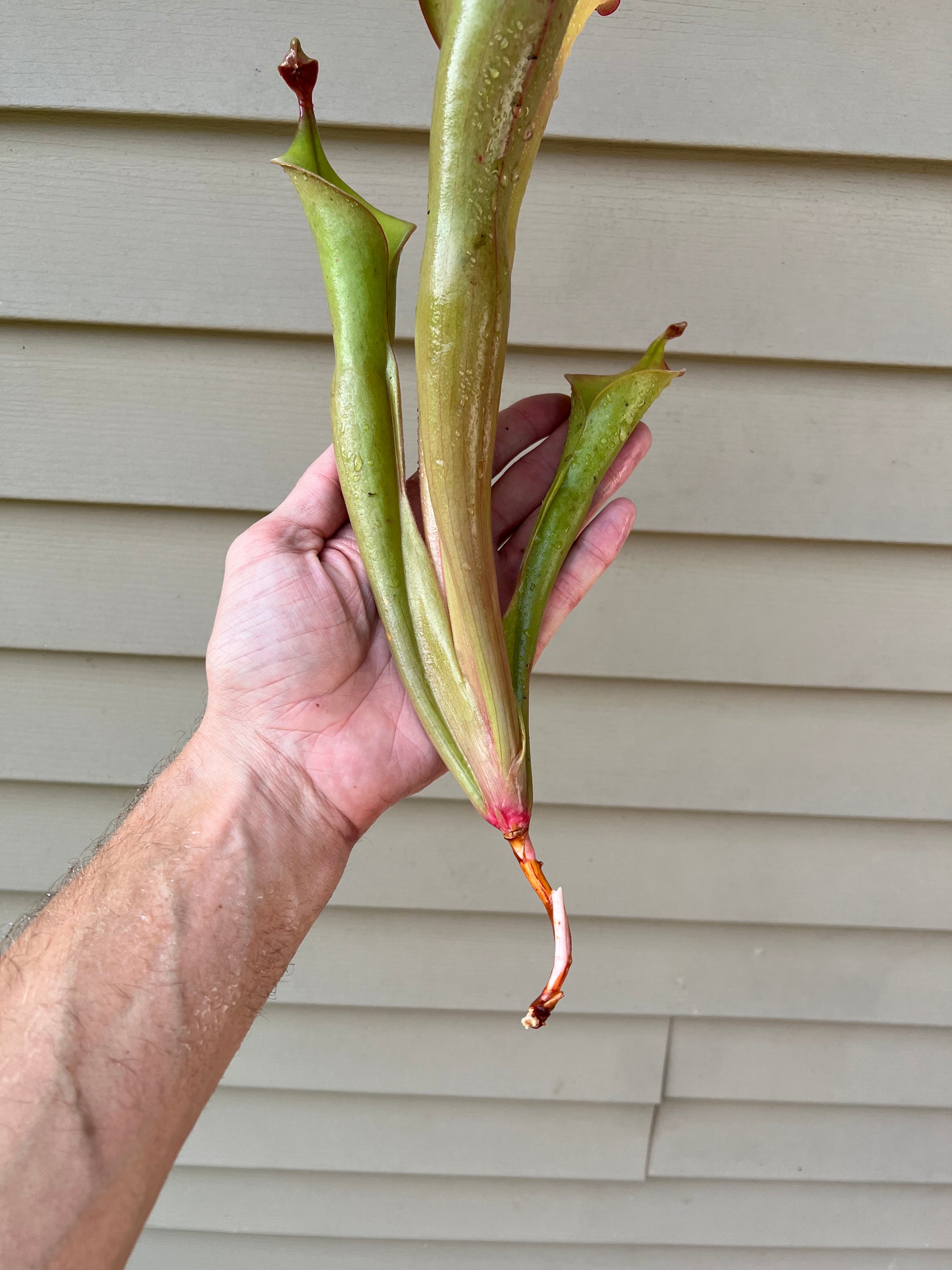 This division of Heliamphora “Godzilla” was propagated directly from our own mother plant that is well documented on our social media channels. This plant has reached upwards of 2ft in height for us so far in our conditions. This division for sale, is roughly 16” tall.