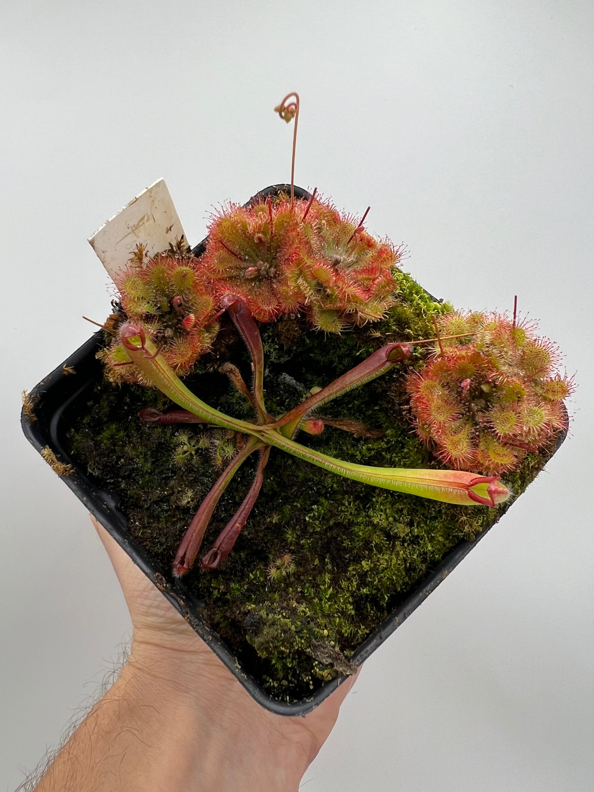 This Heliamphora tatei x folliculata (California Carnivores Clone) was propagated from our own mother plants. It is fully rooted and actively growing. The plant shown is the exact plant you will receive.