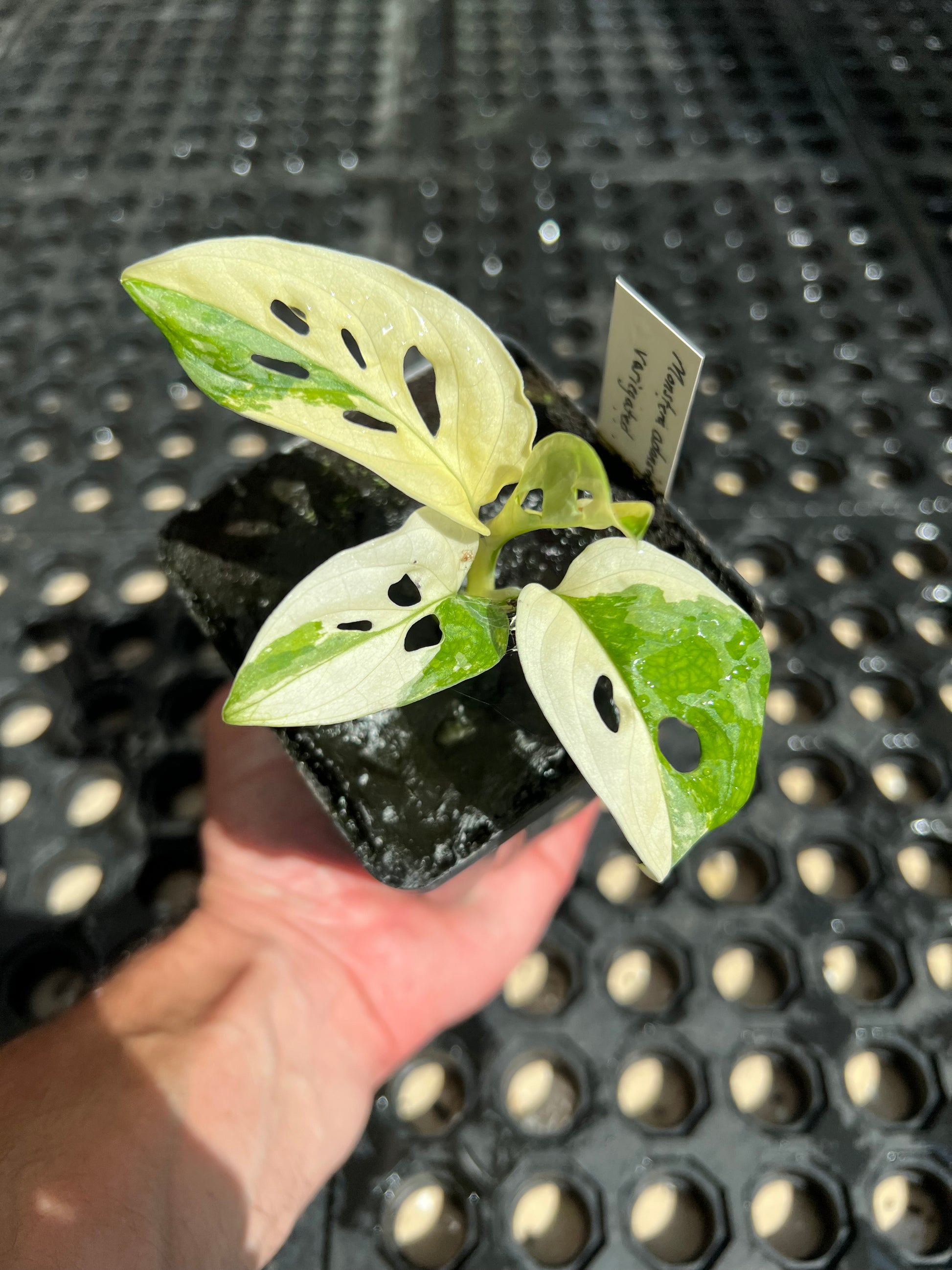 This Monstera adansonii “Tricolor” LC is a plant that is unique to Little Carnivores. The plant shown is the exact plant you will receive. Each plant is fully rooted and established in our conditions.