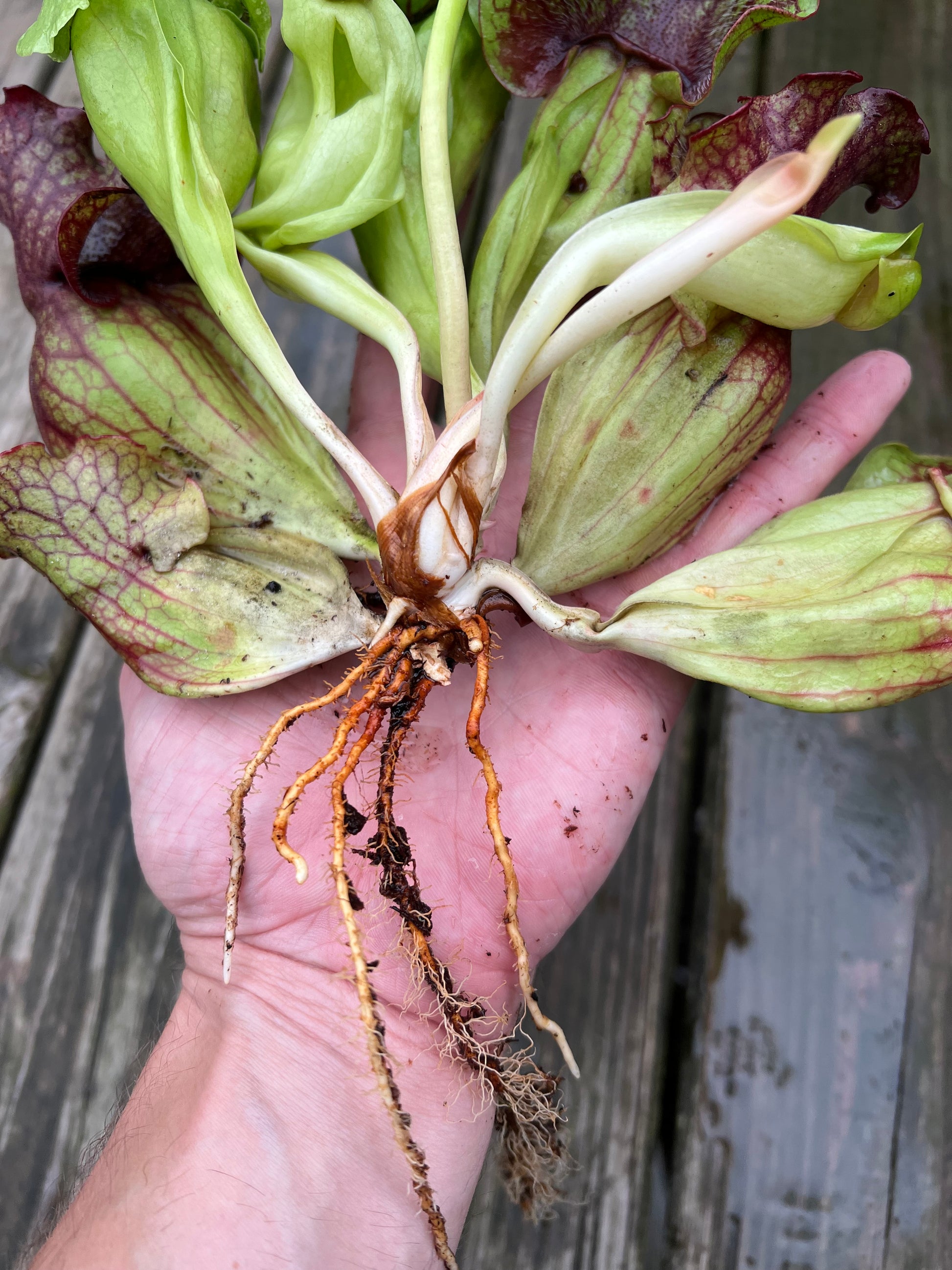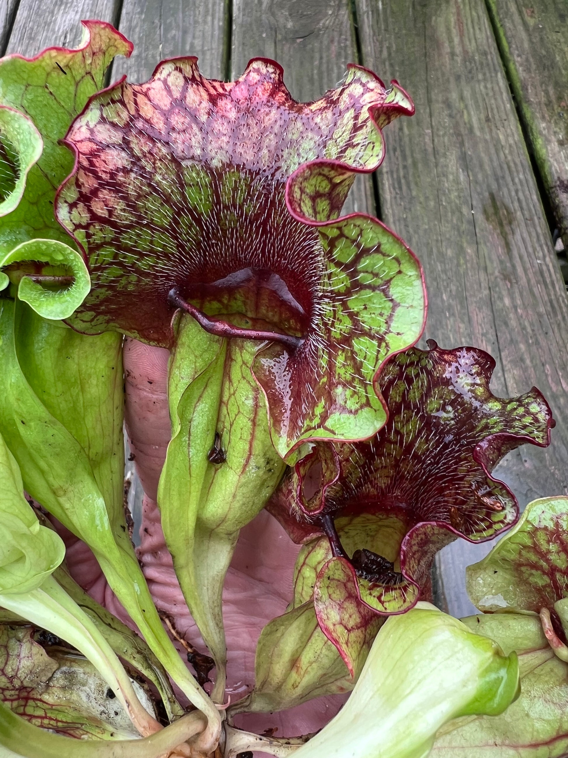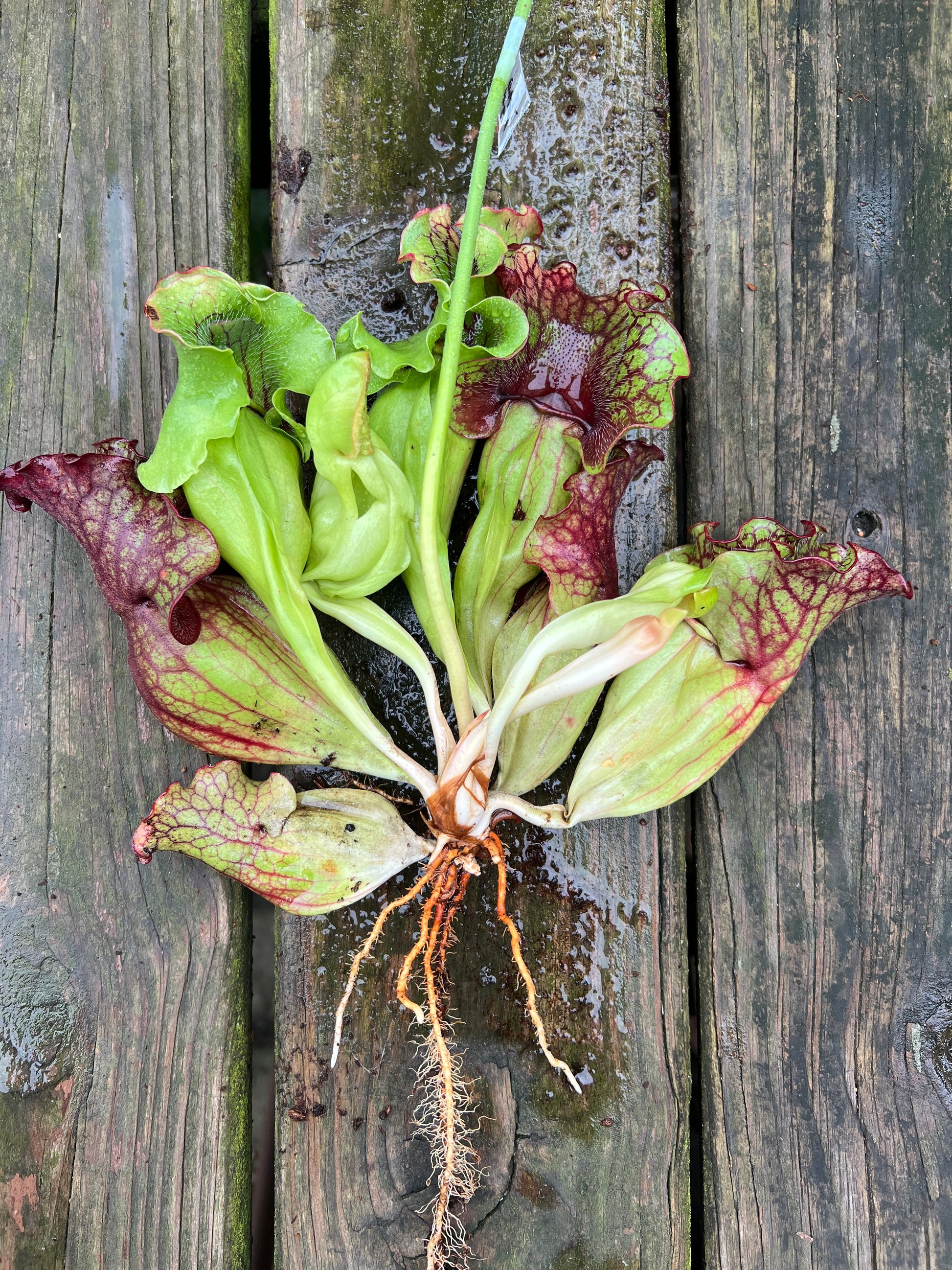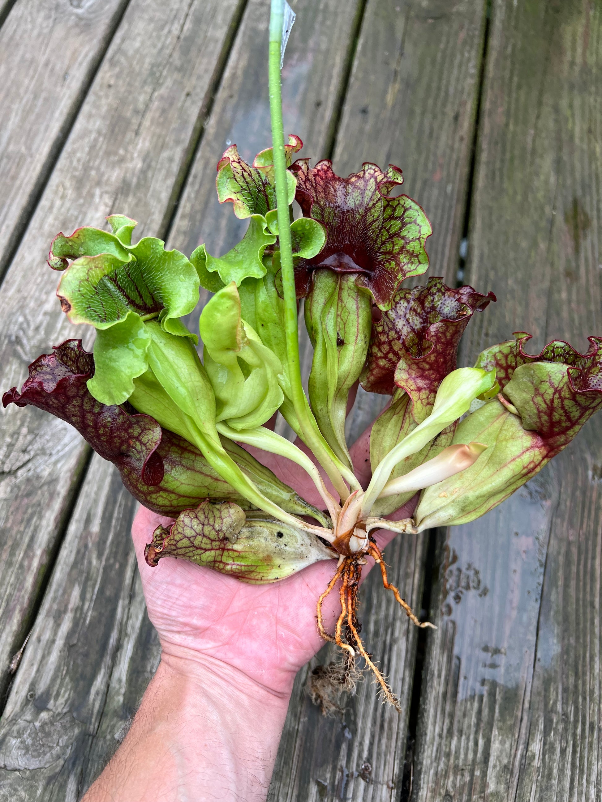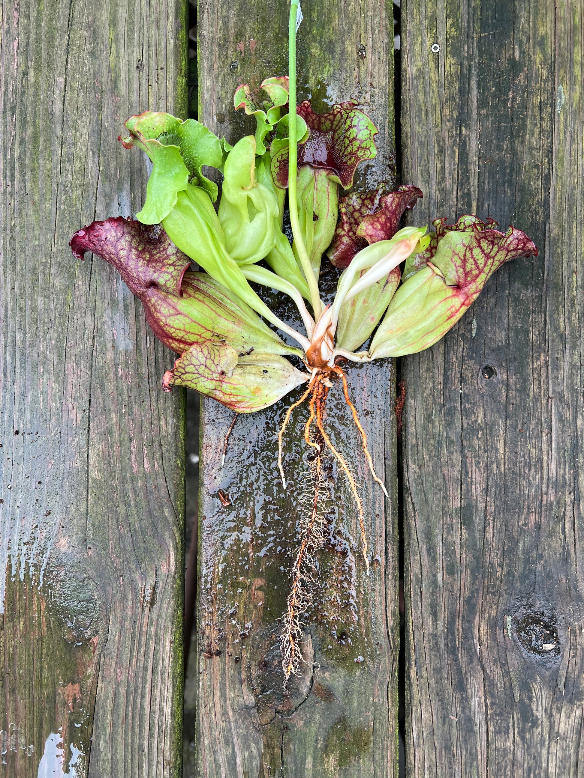 This named clone of Sarracenia purpurea we call Sarracenia purpurea “Rufflestiltskin”. This plant is unique to Little Carnivores and was originally grown from seed. This is the very first time we are offering this plant for sale outside of our personal collection! This plant is a pure ssp. venosa with a ton of character. (Photo of mother plant for visual reference)